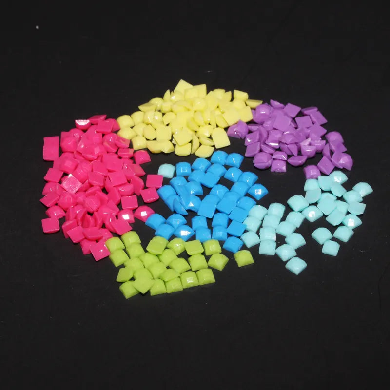 1,000 drills weighs approximately 5g. Each bag contains 6g of drills to account for possible measuring errors, giving you 1,000-1,200 drills. Our square resin drills feature 9 & 13 facets, while our round acrylic drills boast 23 facets, ensuring brilliant light reflection and a flawless finish. Whether you're replacing missing diamonds, expanding your color collection, or creating custom designs, our drills provide consistent shape, vibrant color, and a seamless fit.
